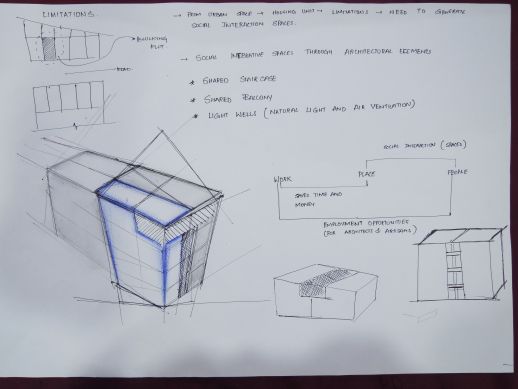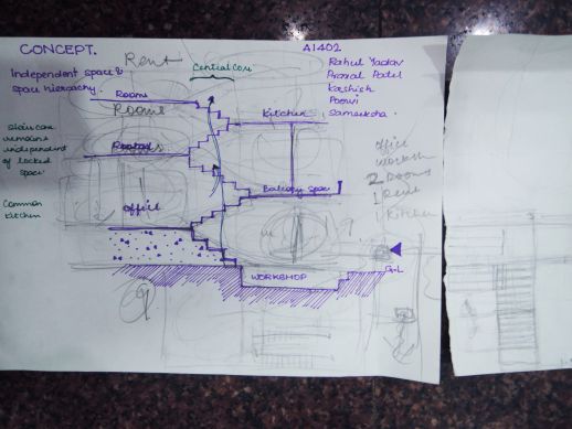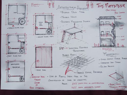 "You are moving to Mumbai with your friends to start your first architecture office. As partners, you collectively invest the money to buy a plot of land of typical Dharavi size 10ft x 15ft. You will need to live and work in this house, while imagining other possible activities that could supplement your income?"