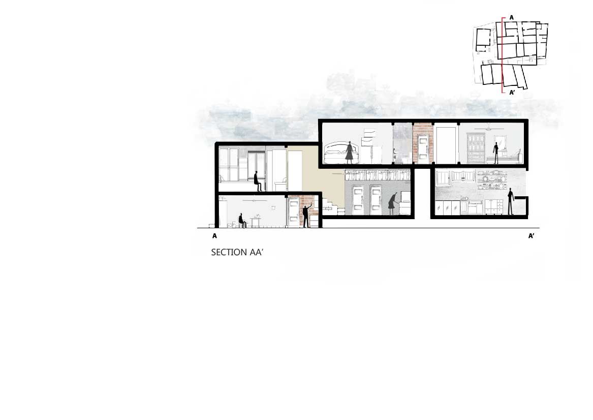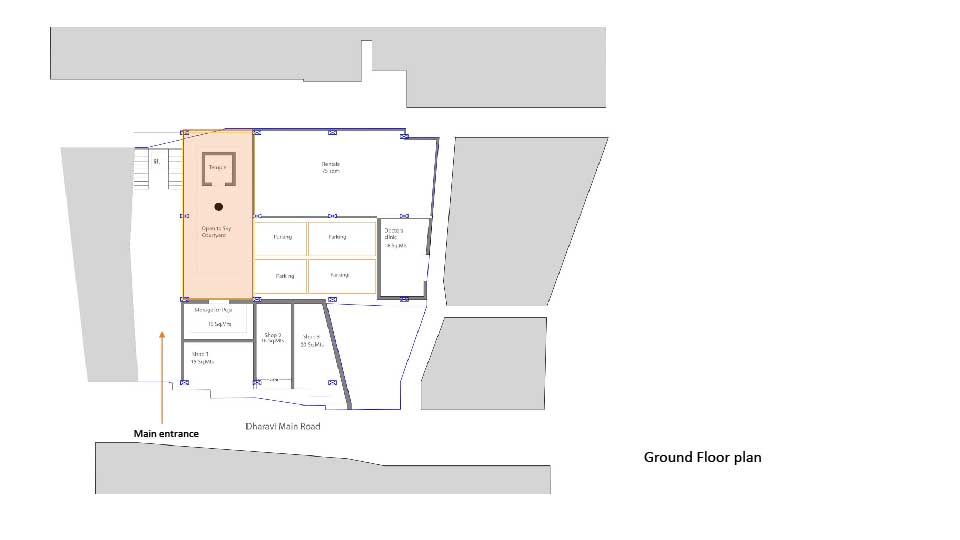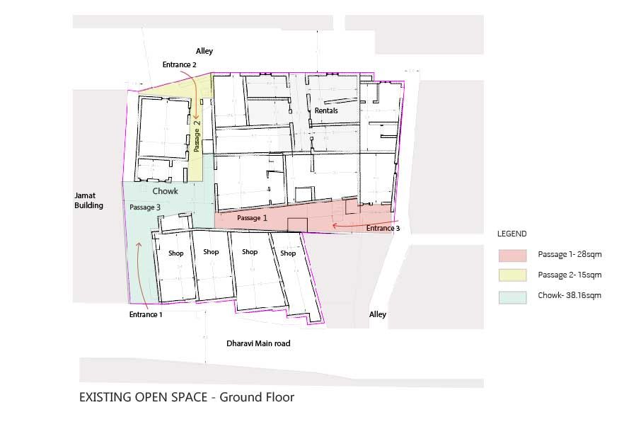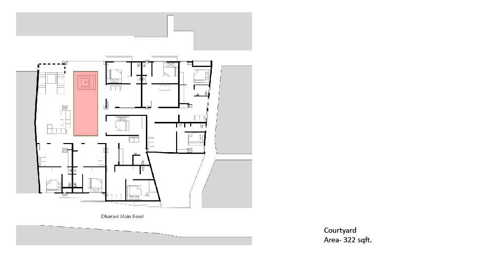 - A connected open space which is also semi-public as neighbours from the back alley traverse the Keny house to get to Dharavi main road