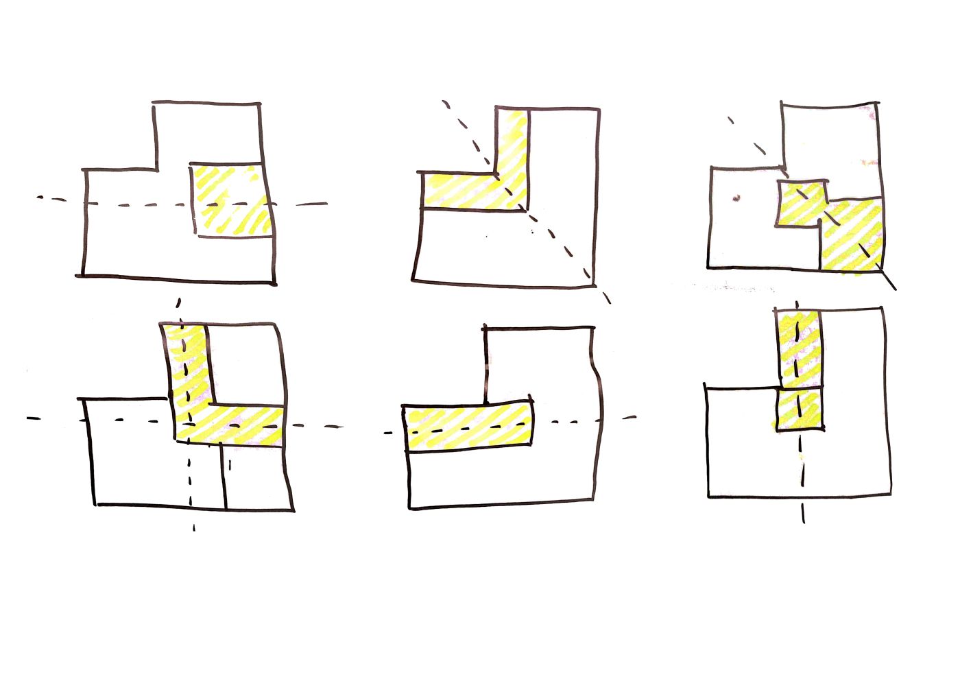 Ravi Keny, has assumed the role of co-ordinating amongst his family members and communicating with the urbz team. The initial meetings with Ravi Keny highlighted the requirement and the vision of their new home. It was clear from the onset that in order to avoid conflicts, the property had to be redistributed equally amongst the five brothers. The building bye-laws allow a maximum of three storeys to be built on the plot. The ground floor (330 Sq.mts) would retain the rental and commercial units along with parking space for five cars. This leaves us three floors whose areas have to be divided into five equal parts, one for each of the five brothers.