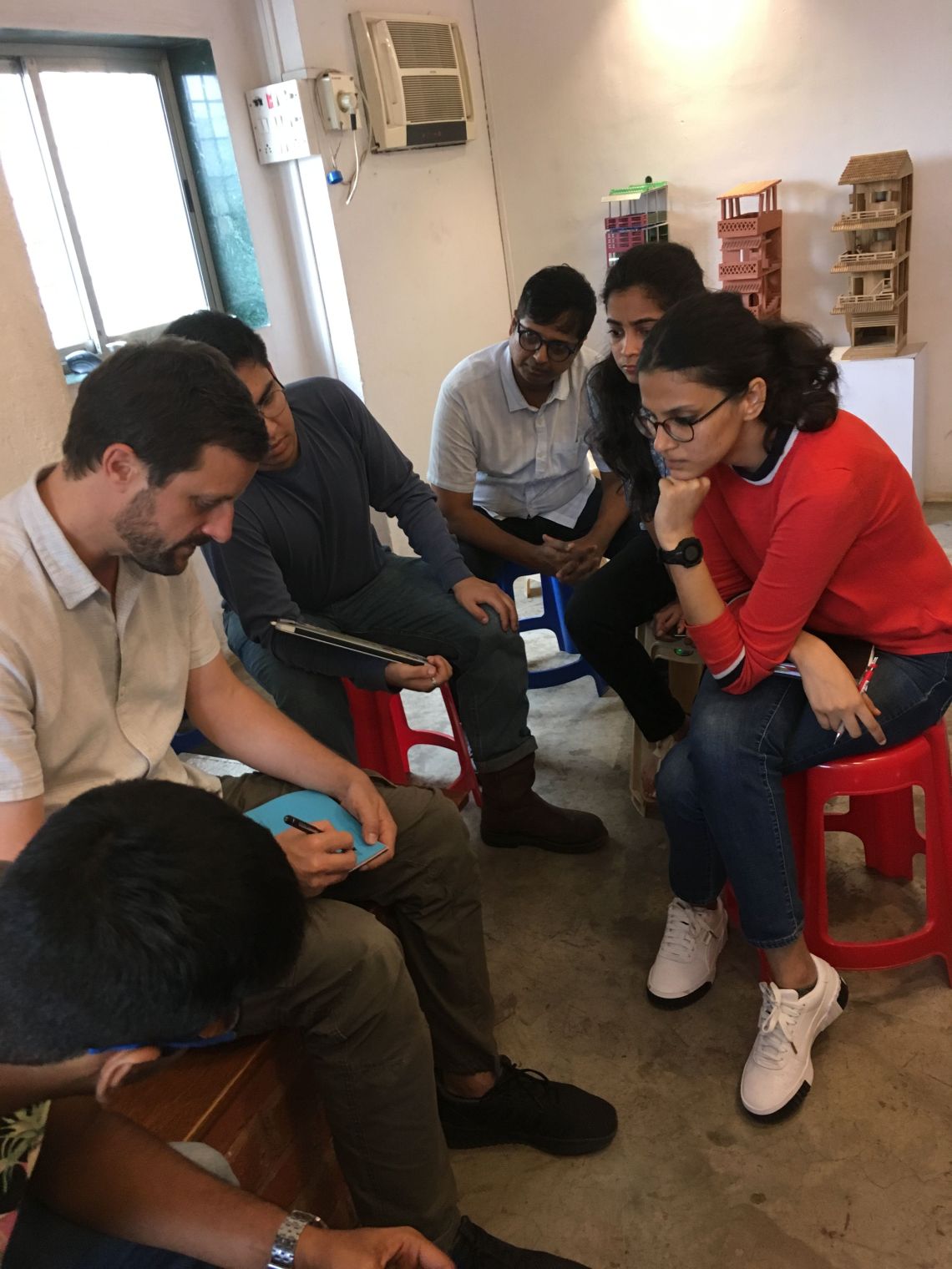 Each brother has three to four children, while not all of them reside here, it was important that they are provided for. Here is where inter-family dynamics decided the further appropriation of space within each brothers allocated area. After further discussions with Ravi Keny a design emerged such that each brother would have four independent studio apartments each with their own kitchen and toilet. Each studio apartment could then be handed over to one child and his family.