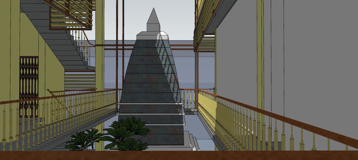 This is a challenging project with unusual space constraints and a high density of occupants. After weeks of drawing, modelling and back to more drawing, we managed to achieve a design that takes care of the spatial redistribution as well as quality. The key feature of the design is a courtyard encompassing a temple. This feature addresses the following requirements;