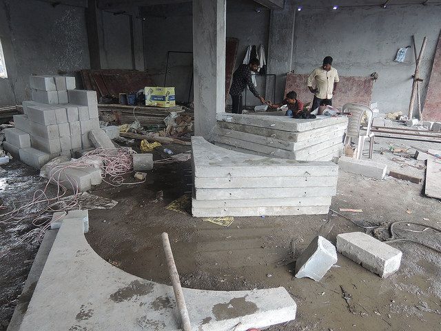 The Jamat and the contractors were engaged in the design from the first step, initiating a discussion about intent. It was important that the building expressed their identity, the Koli Jamat and Dharavi Koliwada. Despite being here since the first day, the Koliwada is consistently categorised as the other and the Koli’s have not projected their presence onto the city. For most, they remain an anecdotal entity existing inside the city’s geographical limits, but outside its present and future. With a large programmatic requirement, the scale of the project itself proved to be the marker needed to announce Koli presence. The idea of self built was something the jamat wanted to emphasise, instead of hiring a contractor and a team of external professionals to do the job, they believed that the Koli’s themselves had enough expertise to carry out the construction. For this reason, 5 contractors from the community were identified, who came together to work on the project; Each handling a specific aspect of the work.
