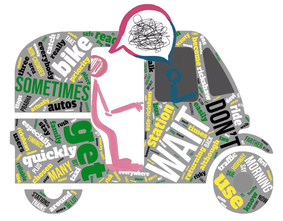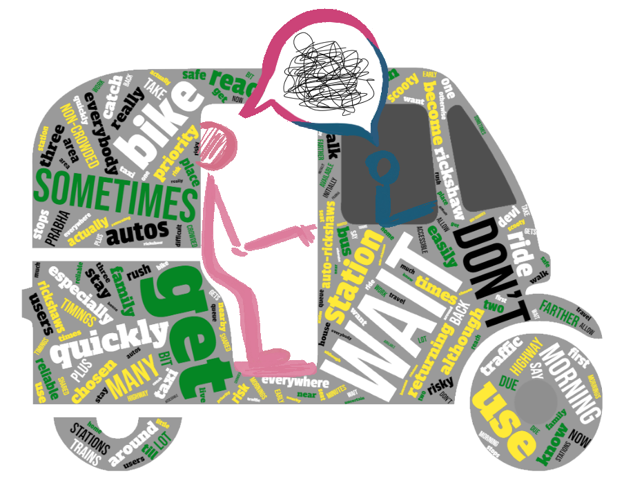 The interviews shed some light on the nuances of the intersection between informality, transit and gender. Upon closer inspection, we could observe some patterns emerge in women’s patronage of informal transit options. Apart from walking, informal transit options (also called paratransit or intermediate public transit) such as auto-rickshaws, and share-autos were among the most used modes to fulfil the last mile connectivity (or here, disconnectivity). Some women had to wait a considerable amount before boarding an auto-rickshaw, while others cited a sense of “loneliness” while walking home on footpaths, with scant lighting.