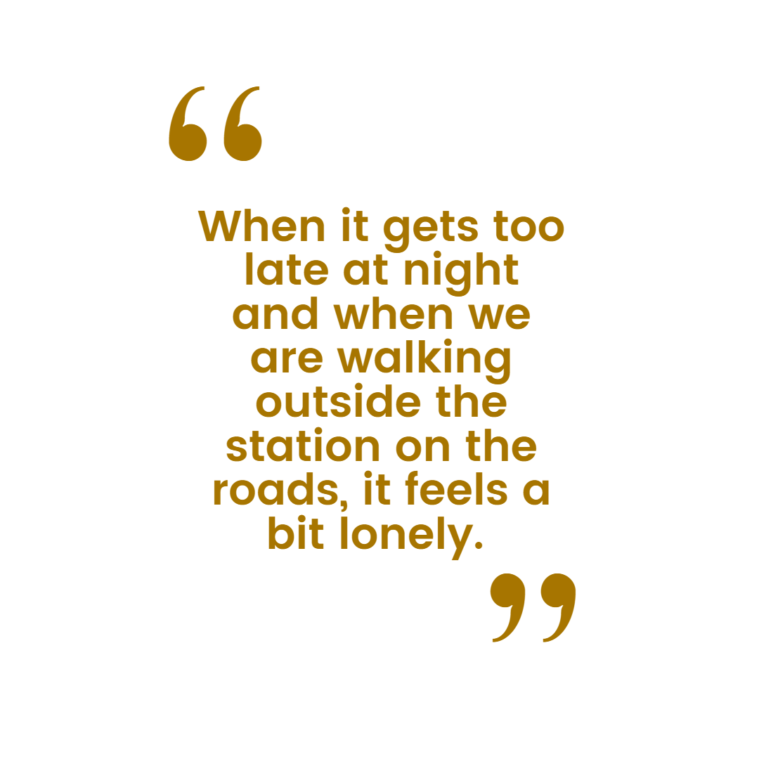 Safety is one of the main determinants compelling women to take more shared modes. One respondent chimes in, "When it gets too late at night and when we are walking outside the station on the roads, it feels a bit lonely.” Another respondent has similar sentiments, though she talks about how the trains also are equally unsafe, “There are a lot of problems being a woman. And the kind of dress that we wear (becomes a big issue) so you find many such kinds of people in the station also, touching you.”
