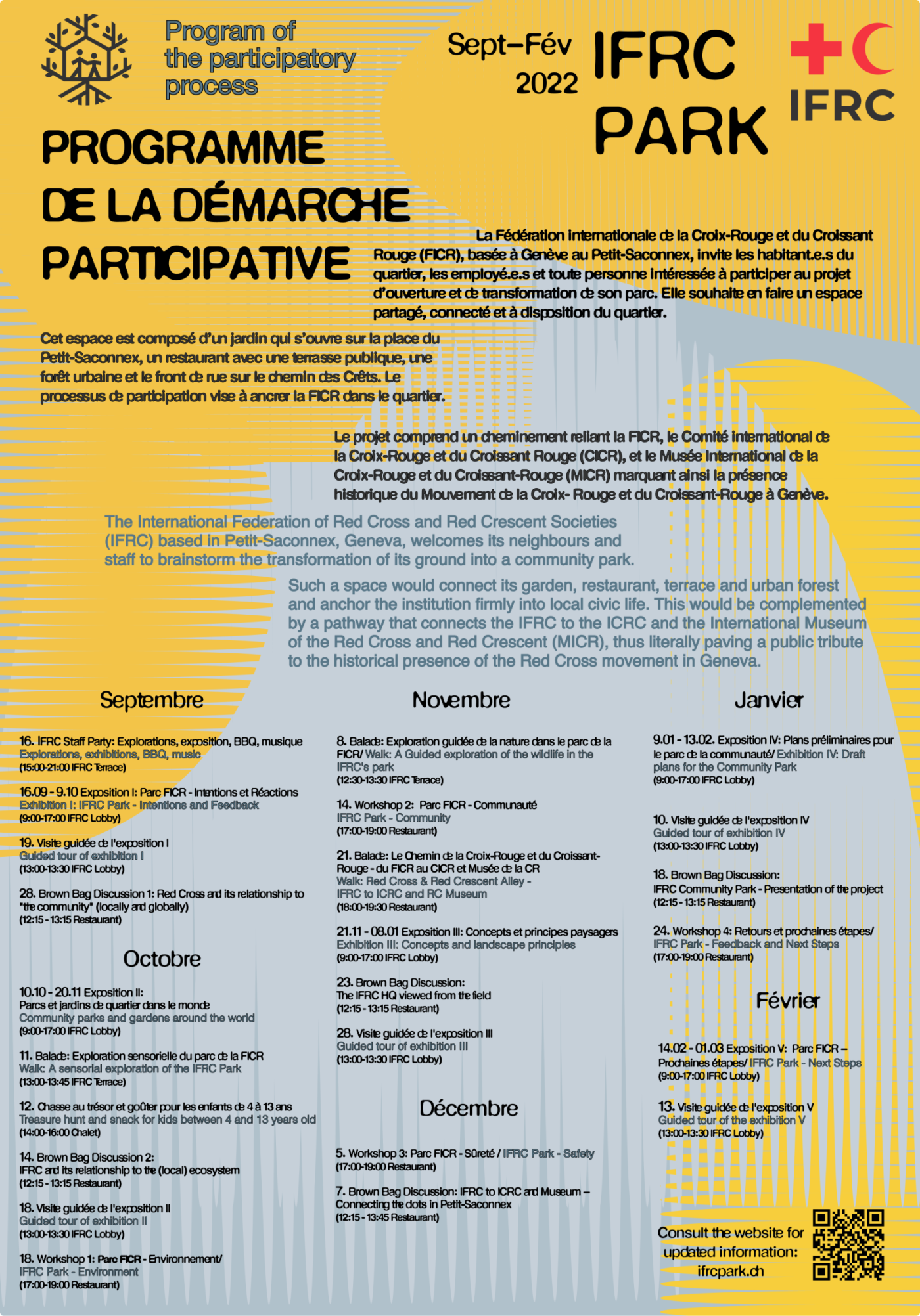 The full program and output of the IFRC project is updated regularly on a dedicated site maintained by urbz: ifrcpark.ch