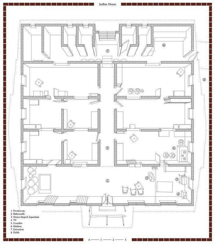 Drawing and plan of the chawl-like house in Ukshi