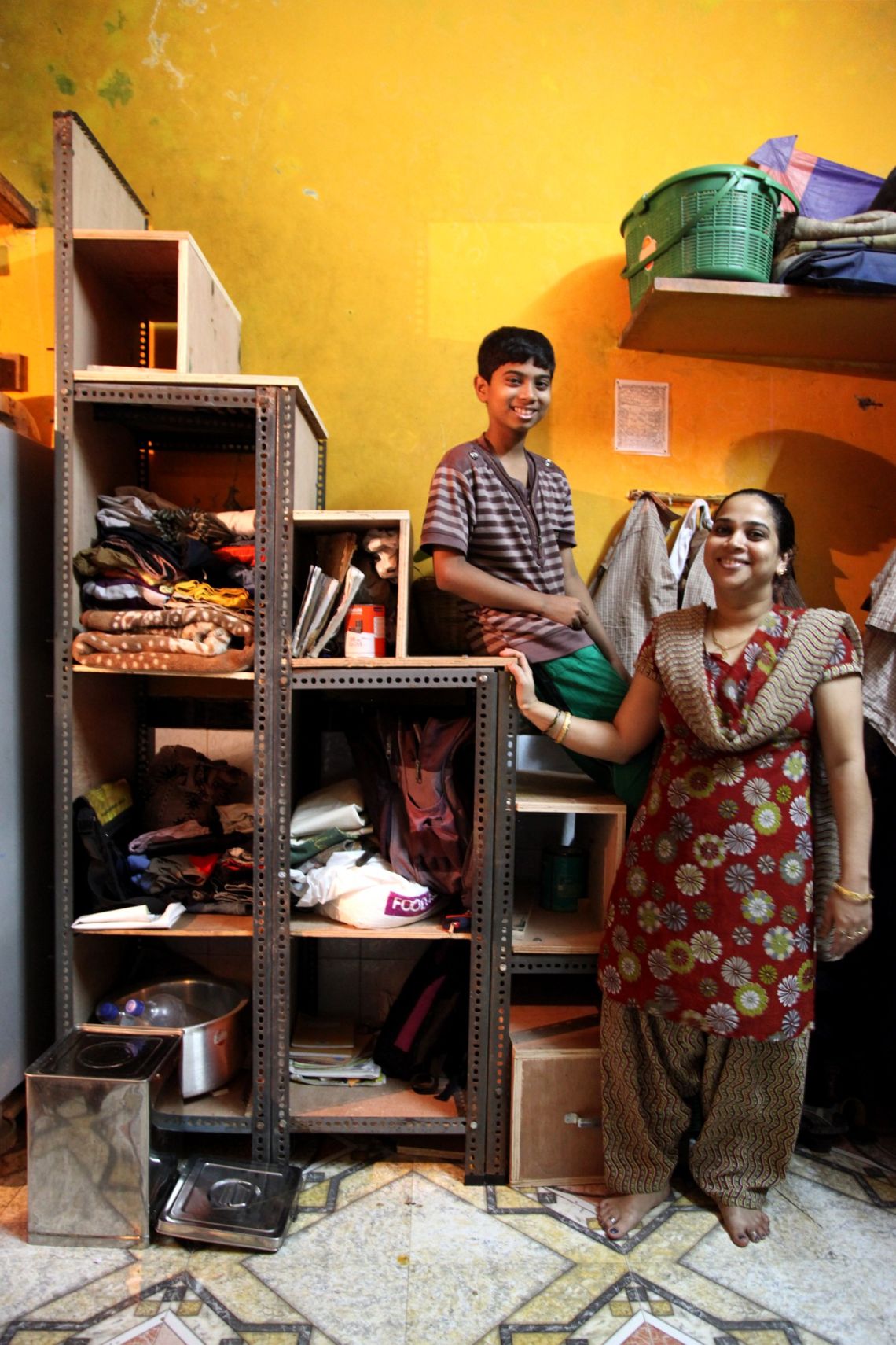 Cecila Tramontano a young architect from Milan and Ganga K. Sharma a local carpenter designed and crafted a staircase that would also act as a storage cupboard at varying levels – something that could be customized to absorb any other object in the tiny home for a little over Rs 8,000.