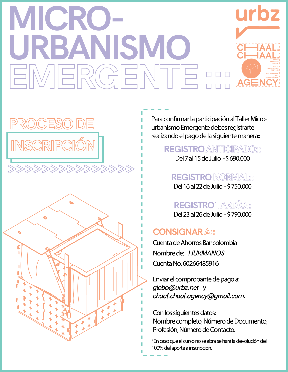 El taller enfoca en mapear las contingencias y dificultades y alternativas que comunidades o individuos enfrentan para desarrollar su vida econòmica, social y educativa, a partir de los inconvenientes generados por los riesgos del COVID 19. Una investigaciòn preliminar del ámbito público, que permita explorar los significados, fronteras y relaciones de poder que conforman la esfera pública y que determinen el acceso a recursos e infraestructuras fundamentales. Estos primeros aprendizajes buscaràn una sensibilización a la forma en que estas luchas cotidianas producen condiciones espaciales, corporales y materiales muy particulares, que eventualmente tengan la capacidad de informar -precisa y profundamente- procesos de diseño subsecuentes.